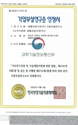기업부설연구소 인정서