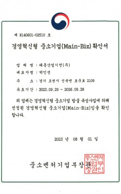 경영혁신형 중소기업(Main-Biz)확인서