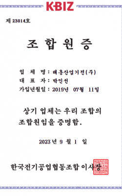 한국전기협동조합 인증서
