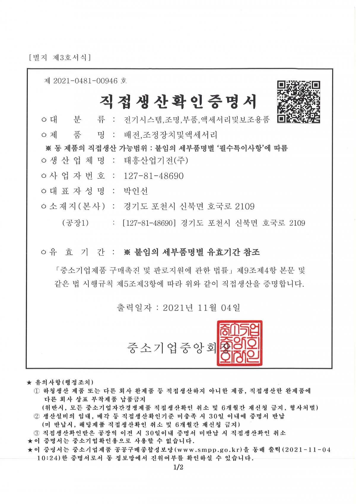 직접생산 확인 증명서 페이지 정보 작성자 최고관리자 댓글 0건 조회 524회 작성일 19-07-19 17:18 본문 . 목록 이전글중소기업 확인서 19.07.19 다음글ISO14001 19.07.19 댓글목록 댓글목록 등록된 댓글이 없습니다.